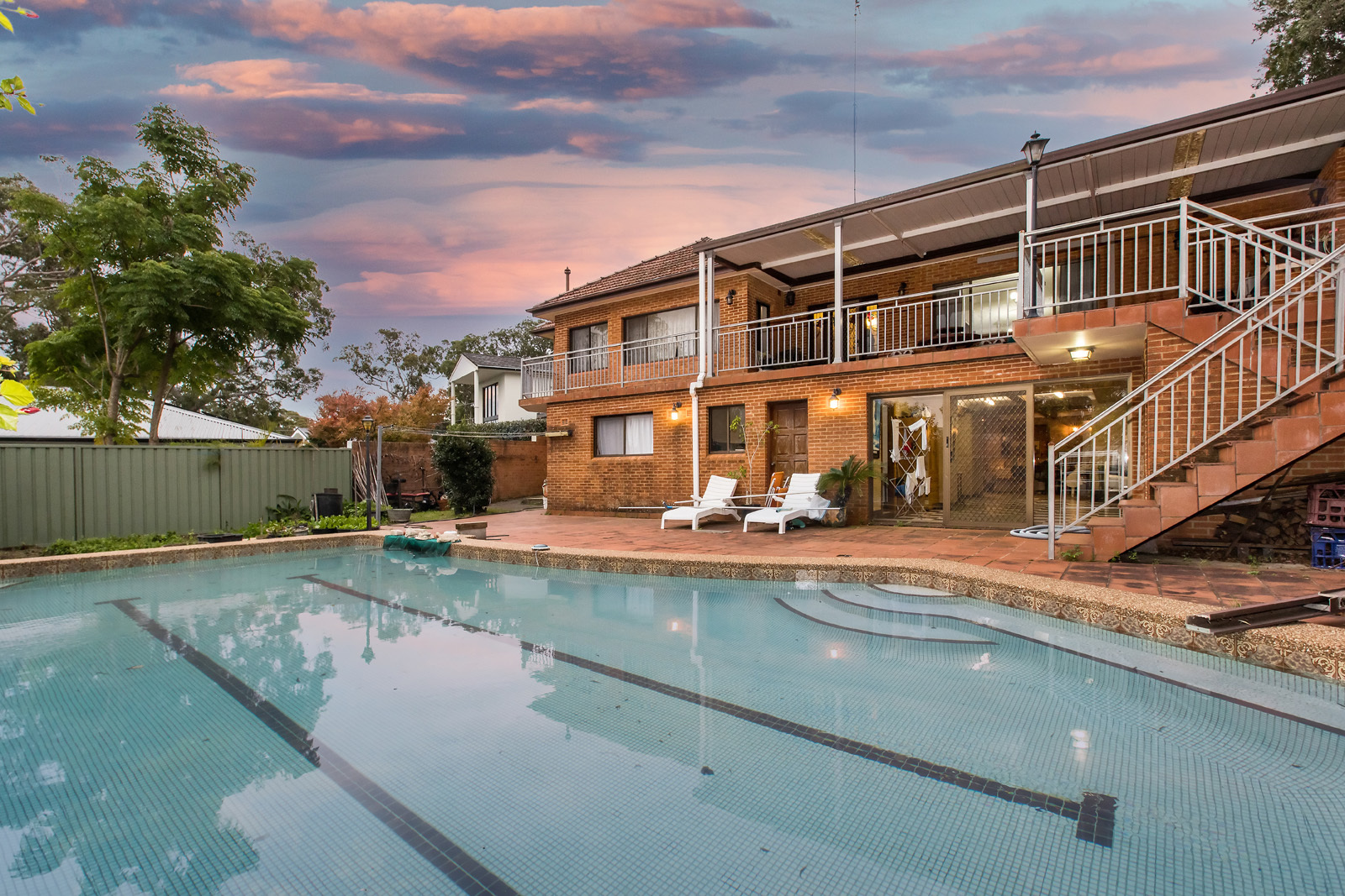 Existing full brick house featuring 4 bedrooms, 2 bathrooms, formal living with gas fireplace, separate dining, timber kitchen, generous family room, leadlight doors opening to extensive terrace with water views, Inground pool and gardens.