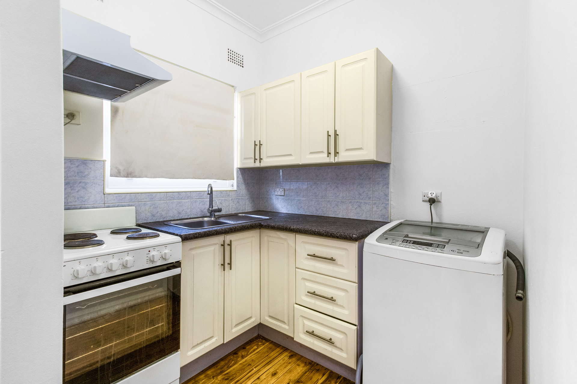 - Internal laundry with washing machine, linen storage