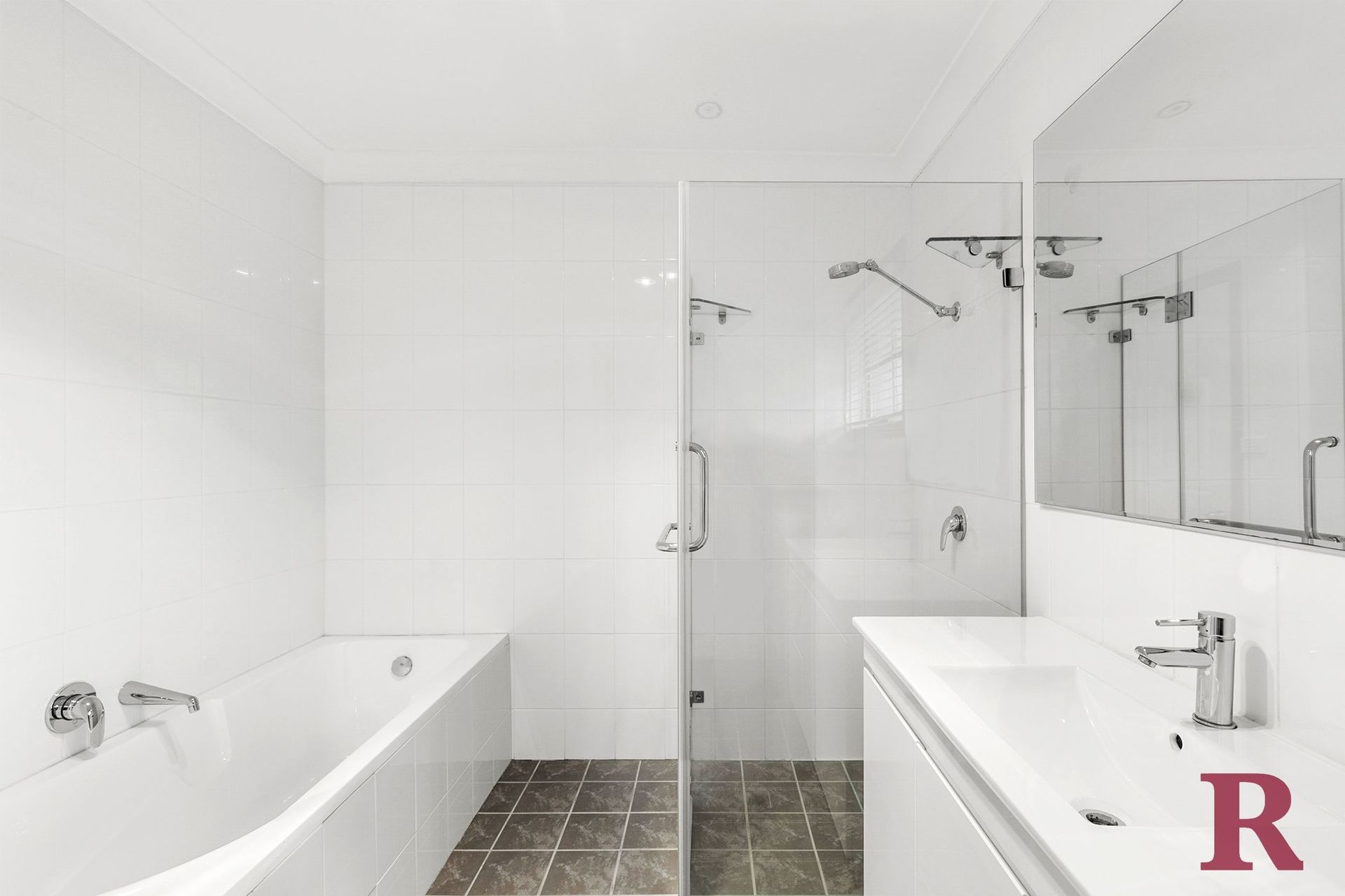 - Contemporary bathroom with bath + Internal laundry with toilet