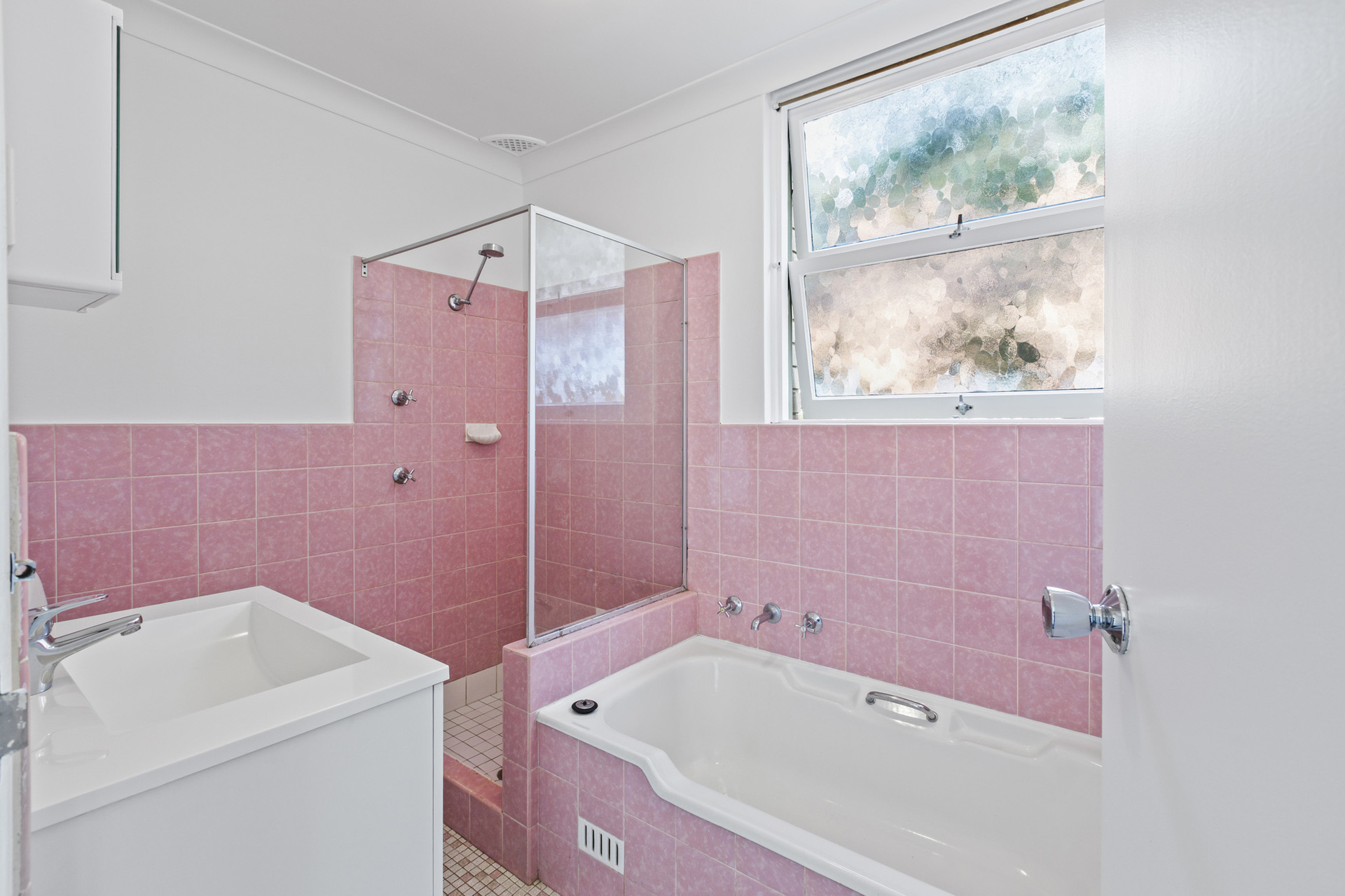 - Clean bathroom with separate shower and bath