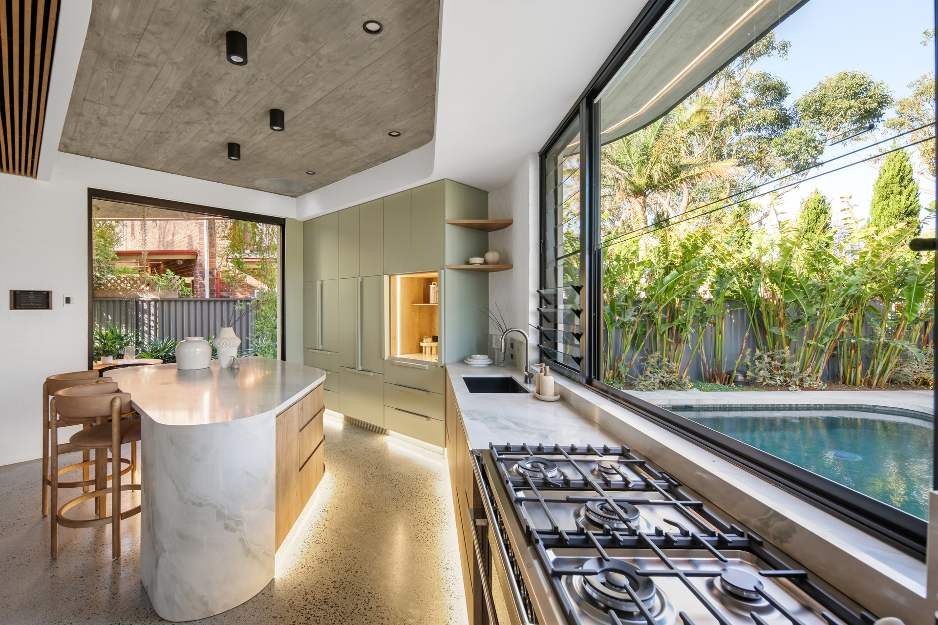 Outdoors, unwind in your private east-facing backyard oasis – complete with a sparkling plunge pool, covered alfresco entertaining area, and lush lawn perfect for children or pets.